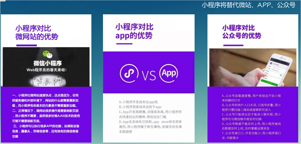 4)小程序可以替代網(wǎng)站、微網(wǎng)站、微商城、APP。可以和公眾號互補;