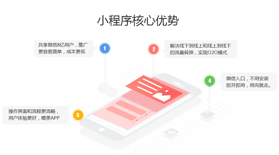 小程序無需安裝、即用即走。替代APP,網(wǎng)站,微網(wǎng)站,微商城。
