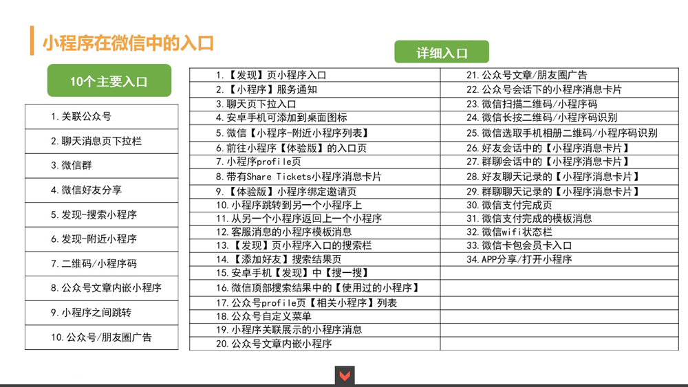 2)微信十大入口可以找到你(附近小程序、公眾號、圖文信息、搜索、二維碼、轉發(fā)、分享、卡券、支付、社交分享);
